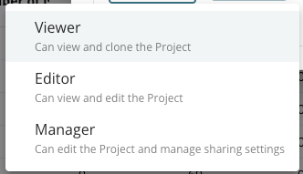 Manager: can view and edit another user's projects as well as invite additional users access the project.