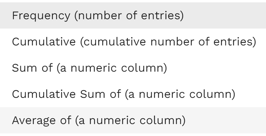All charts have a continuous secondary axis, representing an aggregate calculation:<img src="https://92463871-files.gitbook.io/~/files/v0/b/gitbook-x-prod.appspot.com/o/spaces%2F-MCM3b1nzgmsPUEa2xap%2Fuploads%2Fgit-blob-786aec49d2a3777f9db399769dbef01e64fd82e8%2Fimage%20(198).png?alt=media" alt="" data-size="original">