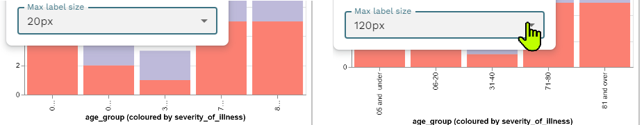 Label sizes change the number of pixels used by the labels, so must sometimes be increased to show longer labels.