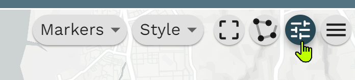 Clicking the configure icon ![](https://92463871-files.gitbook.io/~/files/v0/b/gitbook-x-prod.appspot.com/o/spaces%2F-MCM3b1nzgmsPUEa2xap%2Fuploads%2Fgit-blob-50b240f7a4d1f43e34ab9e2dcfc6f3f656b007ed%2Fcongure_panel.png?alt=media) on the top-right corner of a map panel brings up menus for configuring the [markers ](#markers-menu)and overall map [style](#style-menu), as well as two [quick-filter options](#filtering) to use the map panel for filtering the rest of the Microreact panels.