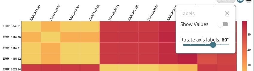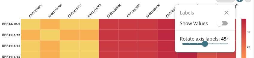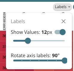 First, users can choose to show cell labels. These values can be toggled on/off at the users discretion using the Show Values button in the labels losenge.