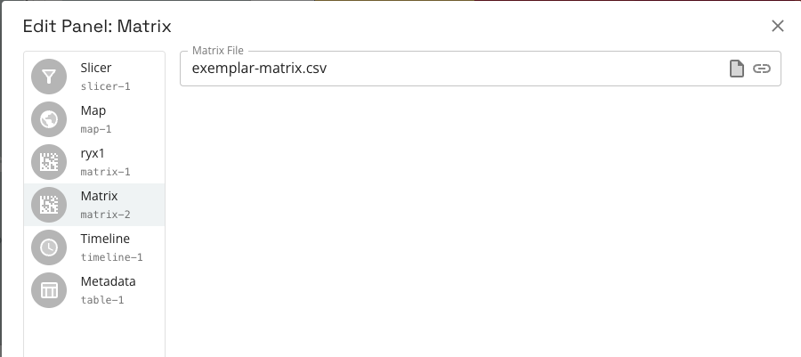**File configuration:** Users can upload the matrix files with the metadata when creating a new project. Alternatively, users can navigate to the Editing Existing Panels menu and within the Matrix panel configuration menu, a local .csv file or the location (URL) of your matrix file can be specified.